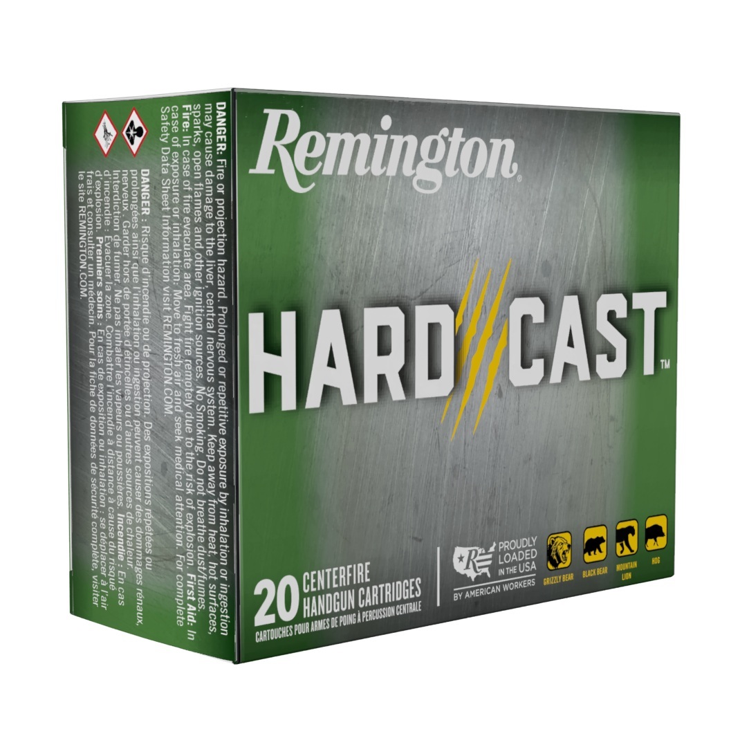 LONOKE, Ark. - January 14, 2026 - Remington Ammunition recently announced its new Hard Cast handgun ammunition line, engineered for deep penetration and reliable performance when protection from dangerous game is the priority. The new Hard Cast is designed for hunters, backcountry travelers, and handgun enthusiasts who demand maximum stopping capability. The four dangerous game defense options feature a hard-cast, waxed-groove alloy bullet for ultimate penetration and a nickel-plated case for reliability. The new loads are 10mm 200-grain, 44 Rem. Mag. 260-grain, 357 Mag 180-grain, and 9mm Luger +P 145-grain.