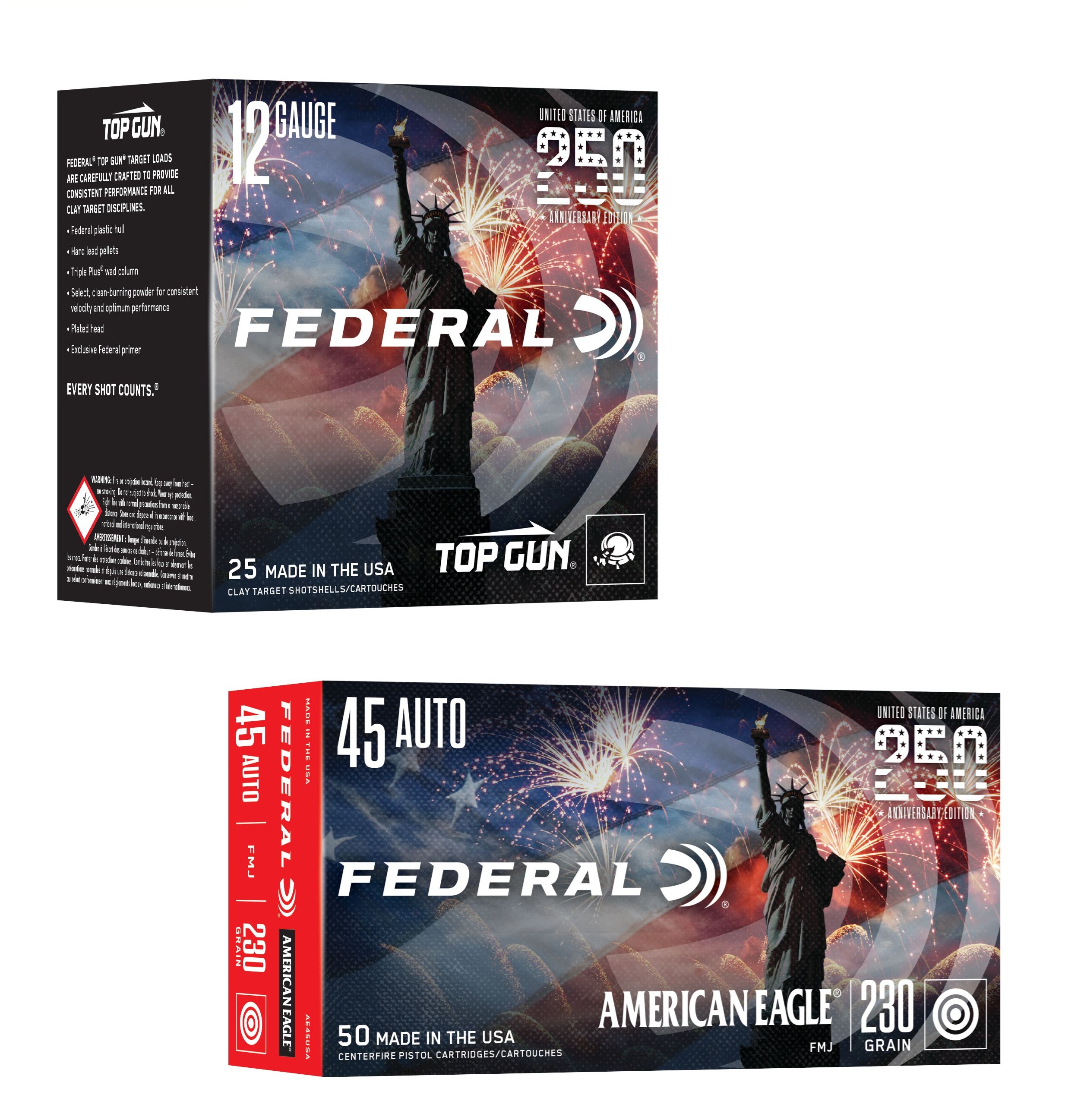 ANOKA, Minnesota - January 13, 2026 - Federal Ammunition announced its new America 250th commemorative ammunition line will be available soon. Created to honor the country’s 250th birthday, these limited-edition offerings span several of Federal’s most popular target product families, including American Eagle, Top Gun, and Champion. The loads deliver the same reliable accuracy and performance shooters expect, now packaged in collectible designs celebrating America’s 250th anniversary.