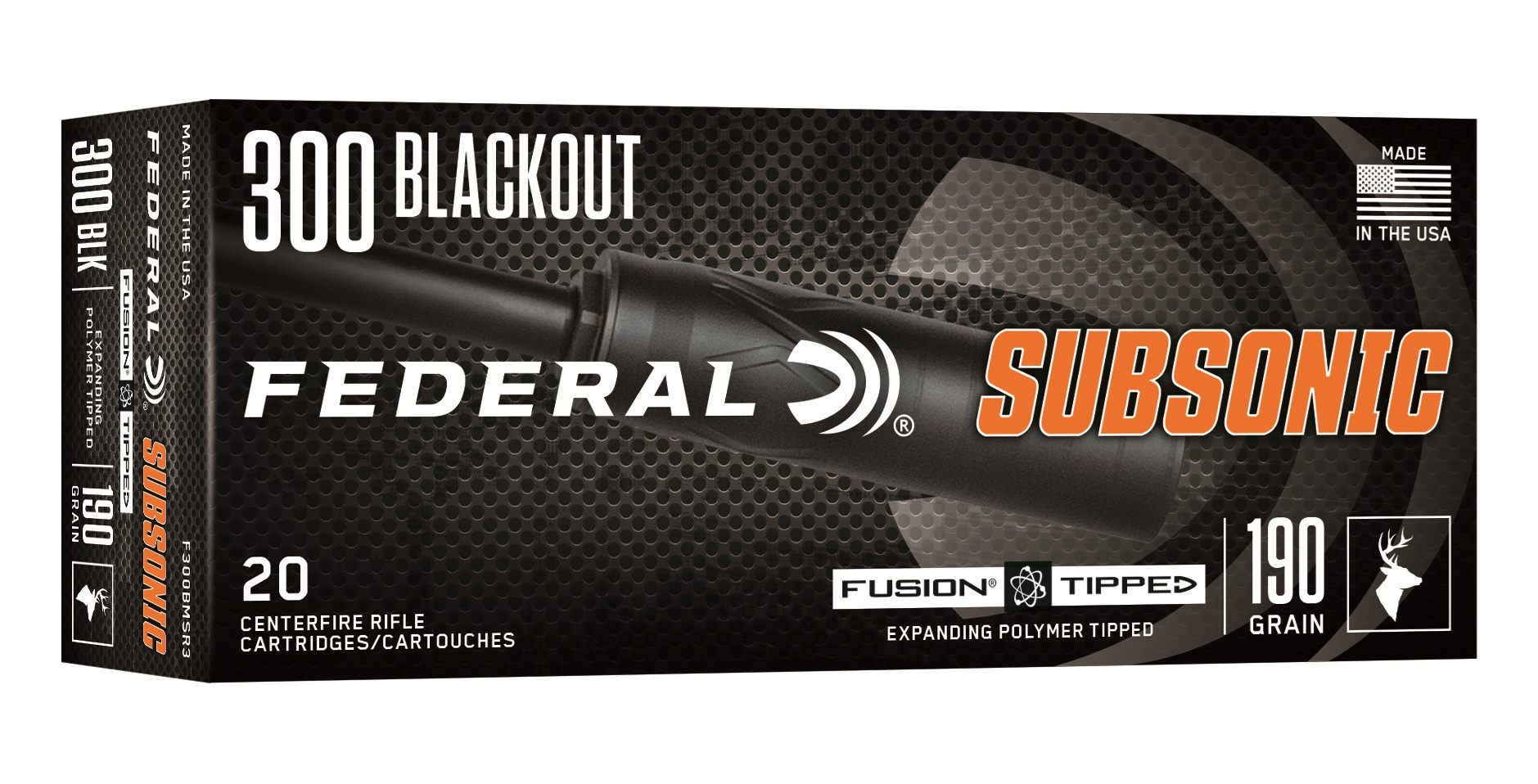 Federal Subsonic ammunition features specially modified Fusion and Fusion Tipped bullets designed to perform at low velocities and loaded to approximately 1,050 feet per second. These loads remain below the sound barrier to eliminate the supersonic crack suppressors cannot silence, while still providing outstanding accuracy and terminal effectiveness.